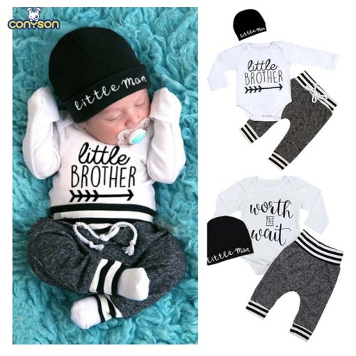 Product Name | 0-18Months Newborn Boy Letter Print Clothes Cotton Sets Long Sleeve Romper Pant Hats Outfit 3Pcs Toddle Baby Warm Suit |