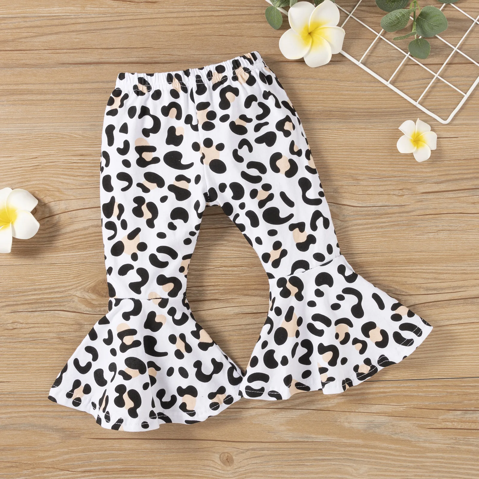 Conyson Baby Girl Clothes Set T-shirt Tops+ Leopard Print Bell-bottomed Pants Flared Pants Outfits Kids Clothes Girls Set