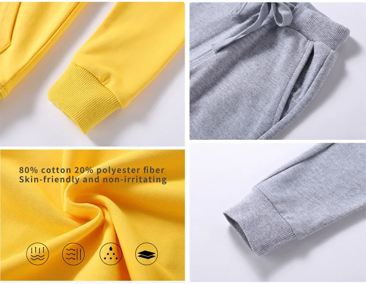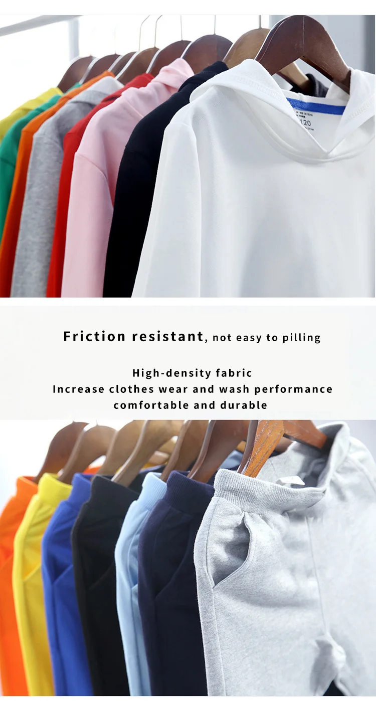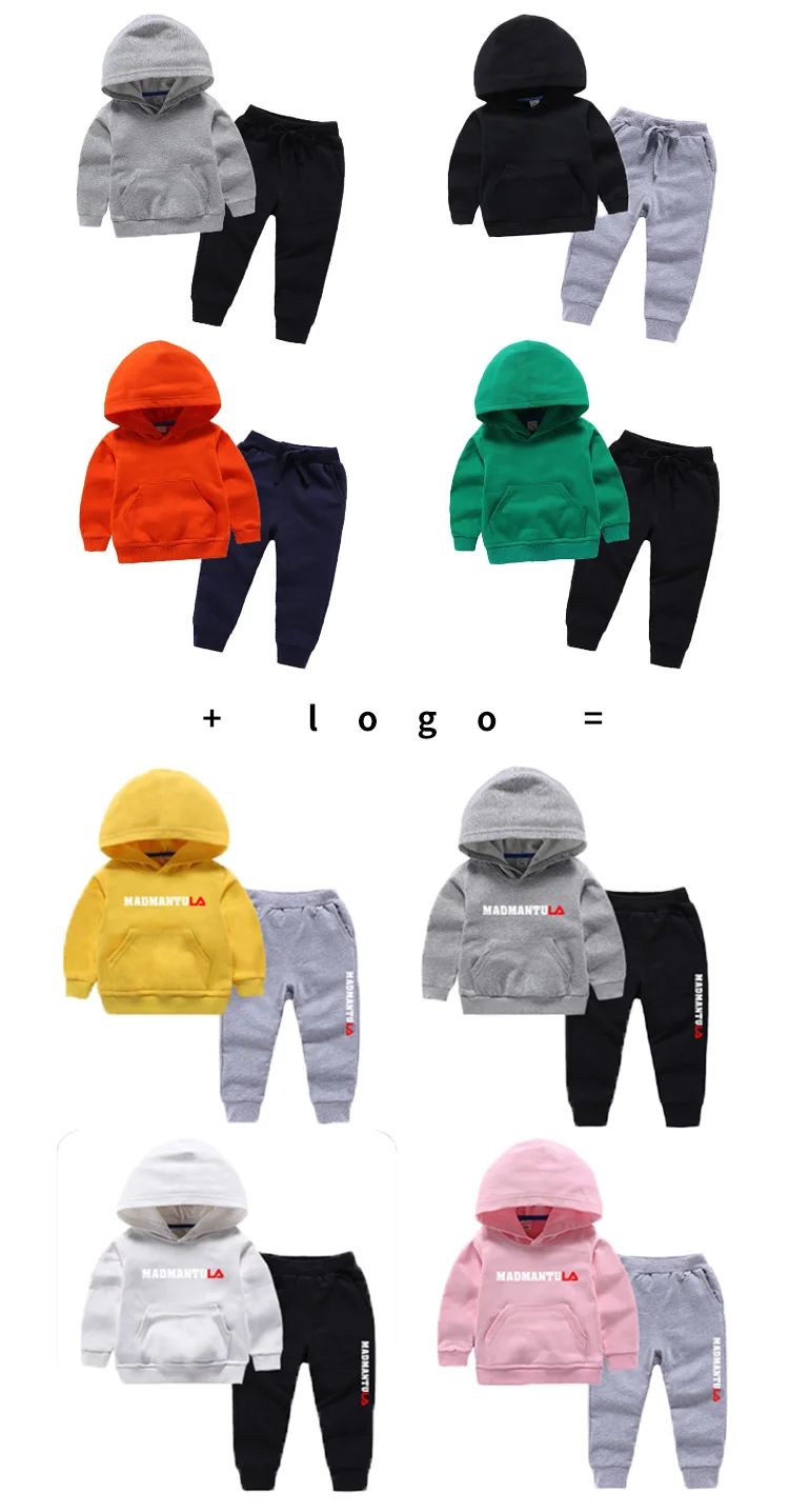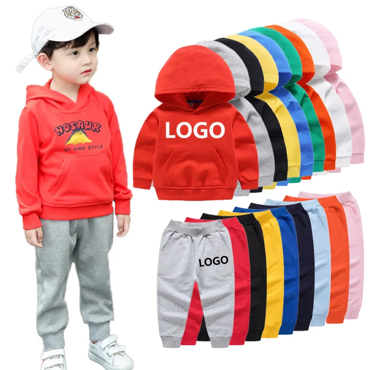 Conyson Cotton Lovely Children Plain Solid Color 2pcs Set Fashion Custom wholesale hoodies LOGO Tracksuit Child Clothing Set