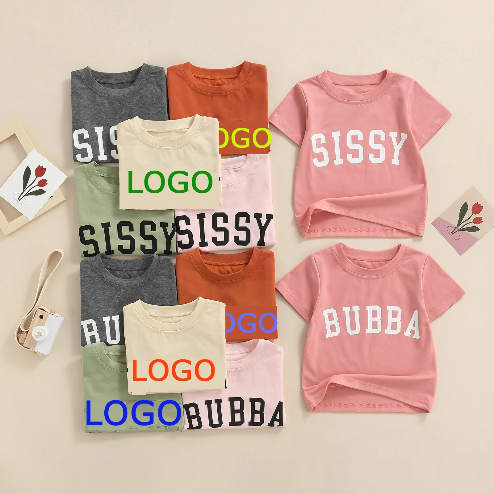 Conyson Customize Summer Unisex Kids Clothes Girls and Boys Pullover Letter Logo Printing Short Sleeves Cotton Children T-shirts