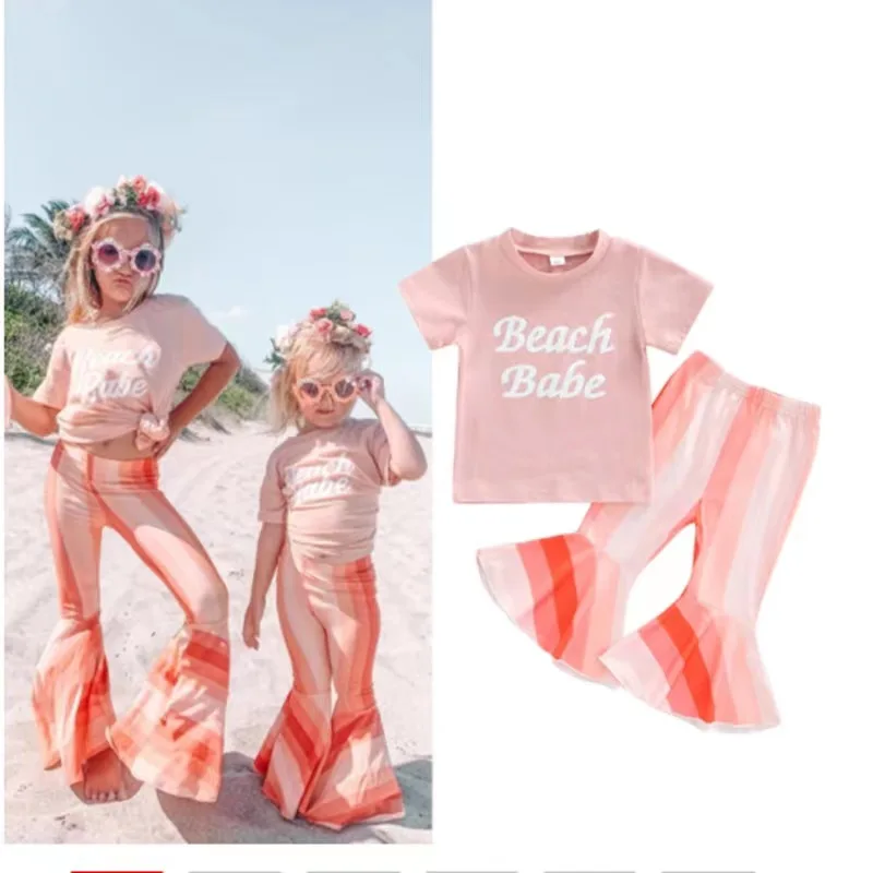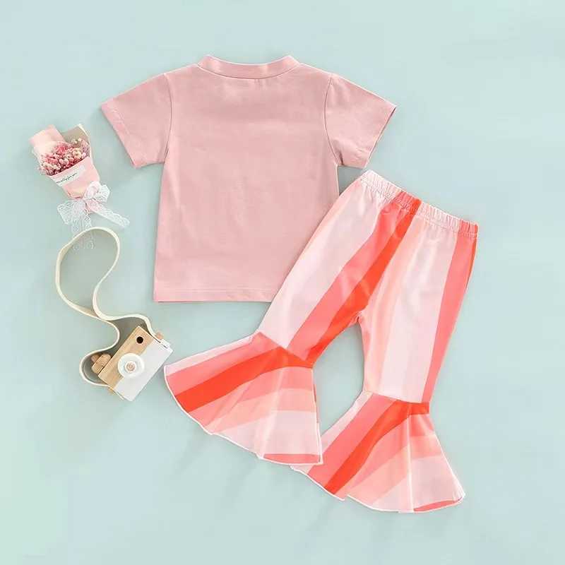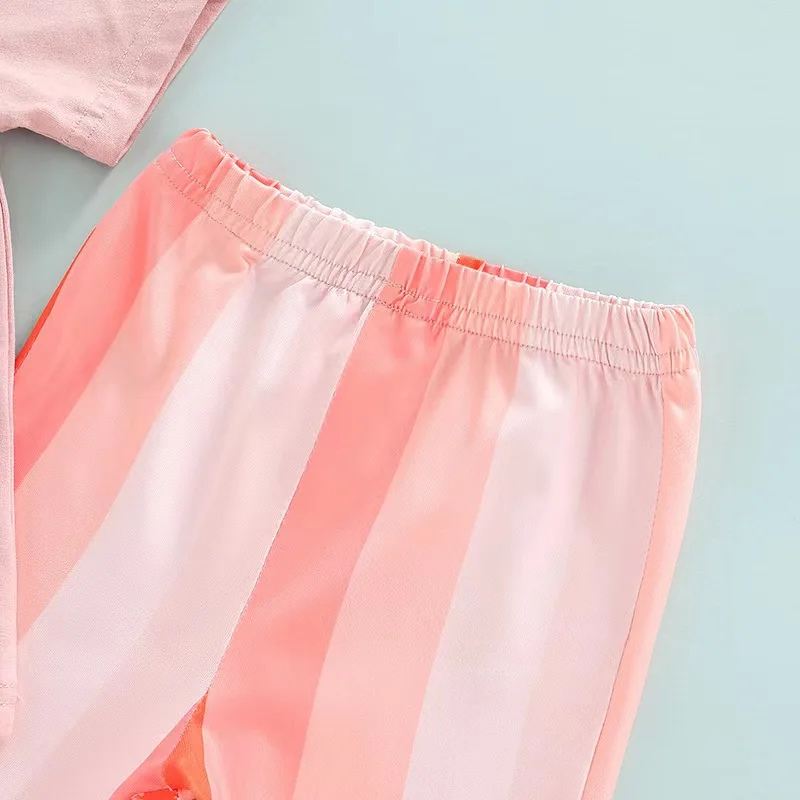 Conyson Fashion Summer Littler Girls Outfits Pink Short Sleeve T-Shirt Long Stripe Flower Pants Kids Girl Casual Clothes Suits