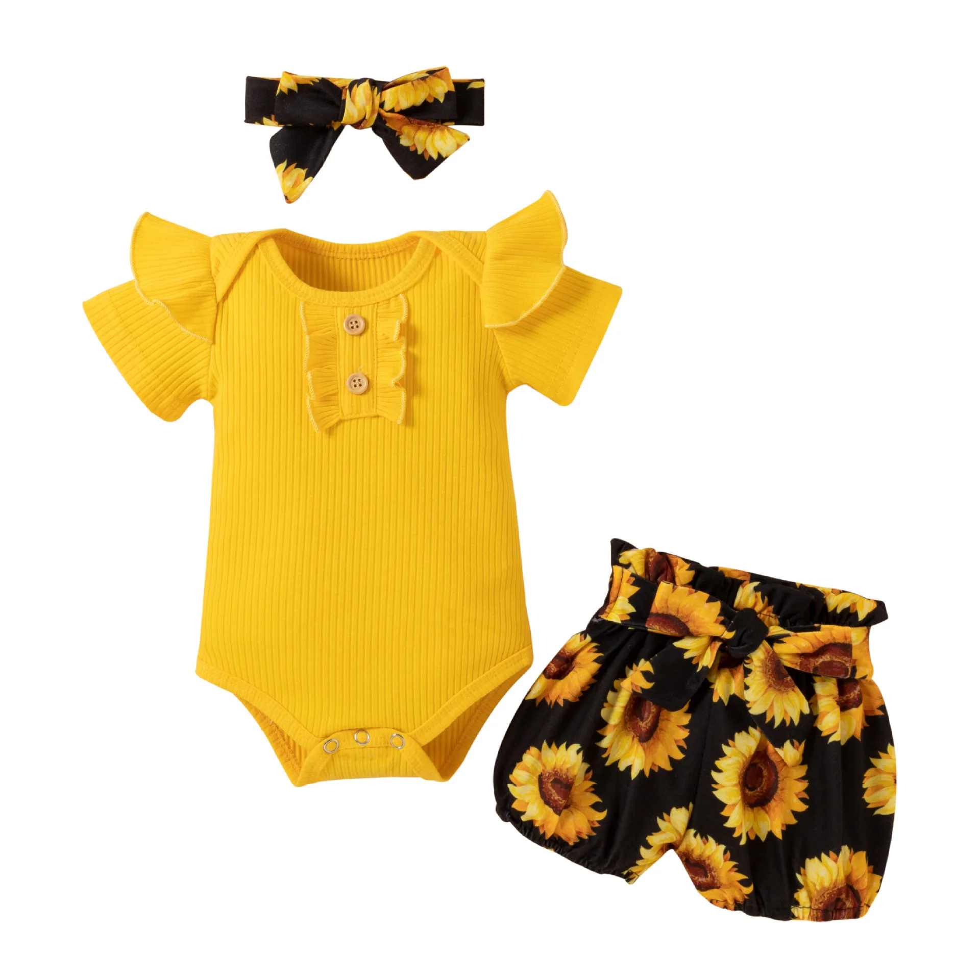 Conyson New Fashion Baby Clothes Baby Girl Romper button short sleeve Newborn Cute Headband Baby Girls Clothing Jumpsuit Romper
