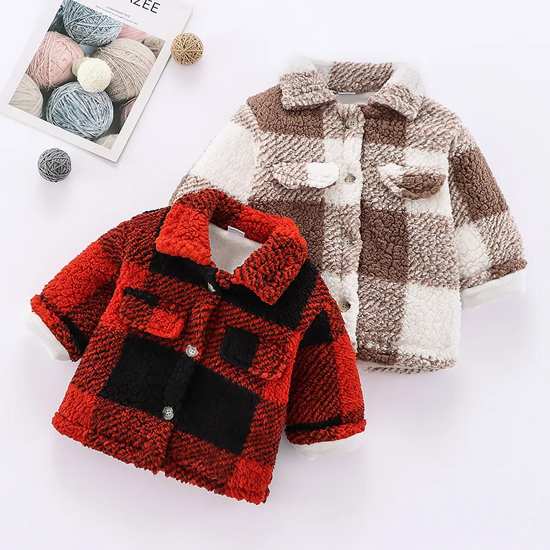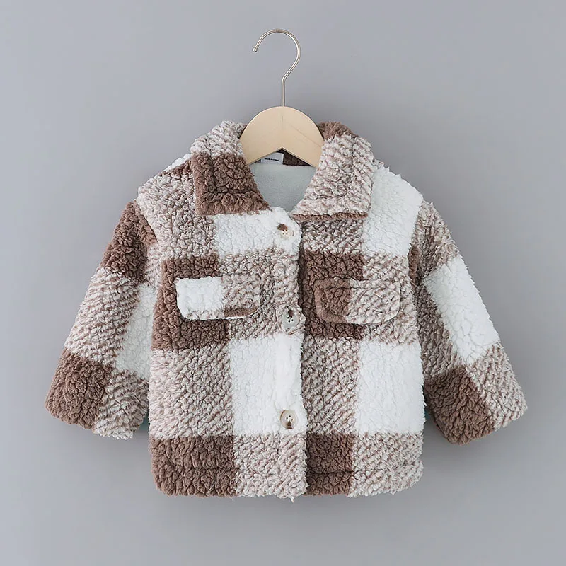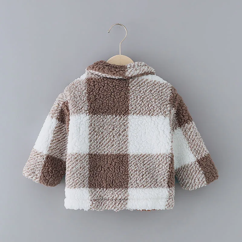 Conyson New Toddler Girls Plaid Lapel Collar Button Design Coat Jacket for Girls Boy Baby Kids Winter Children's Warm Outerwear
