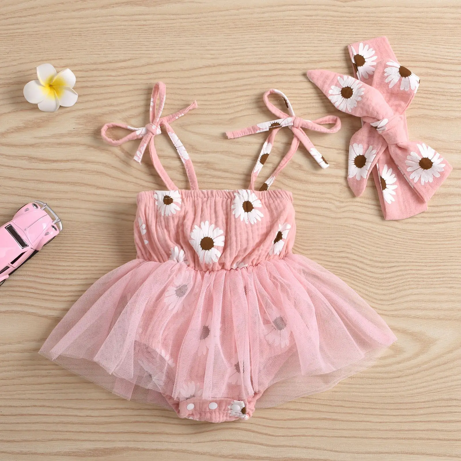 Conyson Newborn Baby Solid Short Headbands kids girls sunflower summer clothing sets Hot Sale Suit Baby Girl Romper Clothes sets