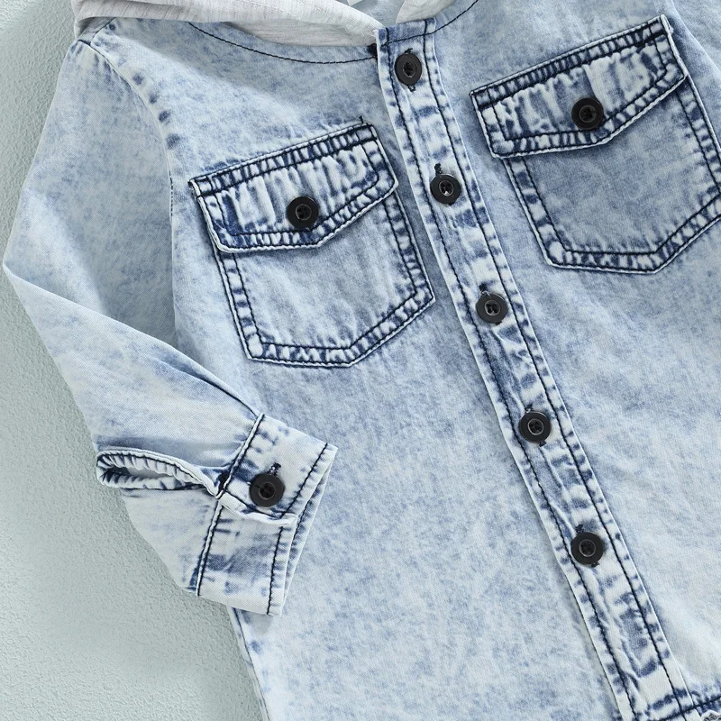 Conyson Spring Kids Girls Casual Denim Coat Casual Clothes Long Sleeve Button Hoodies Children Boys Patchwork Jacket