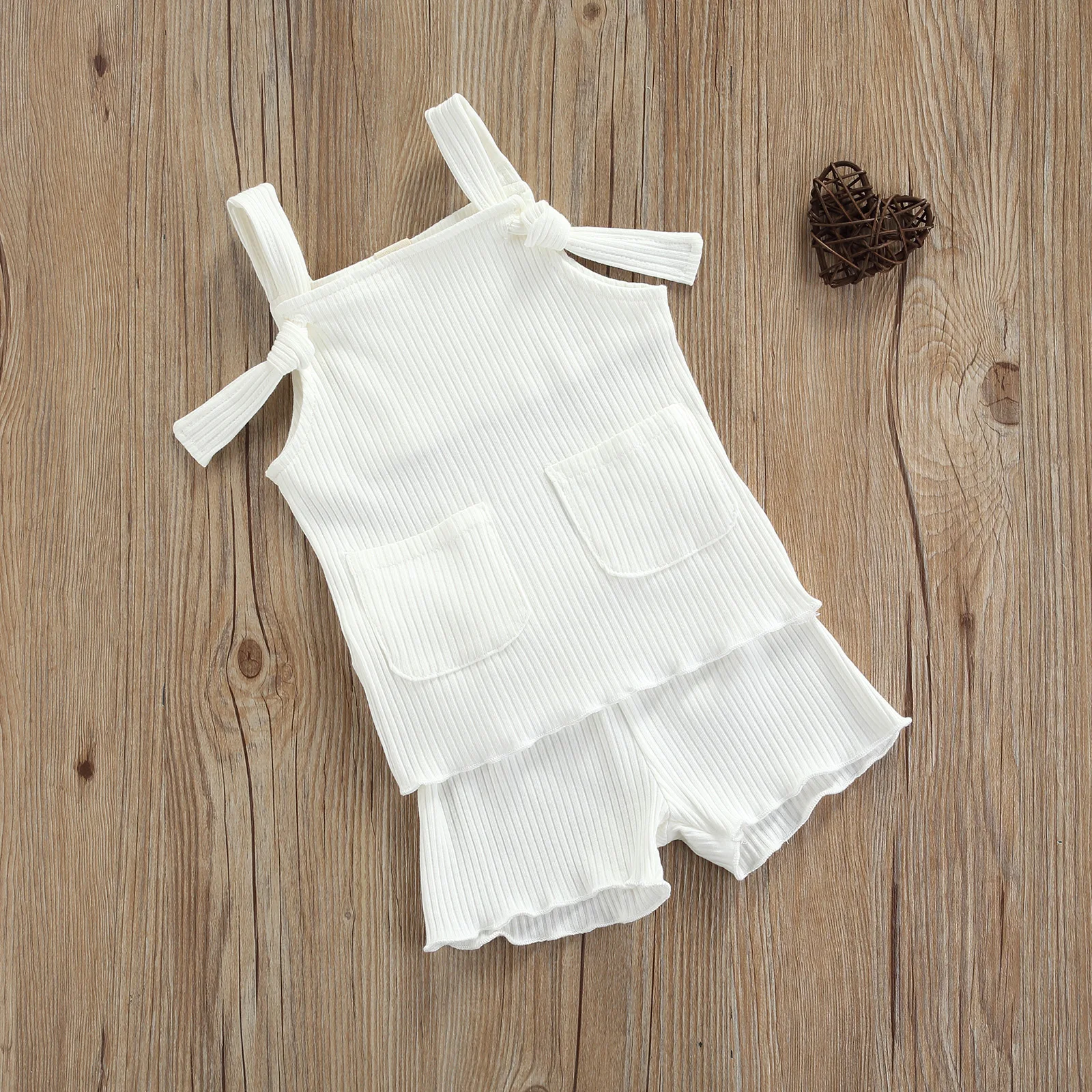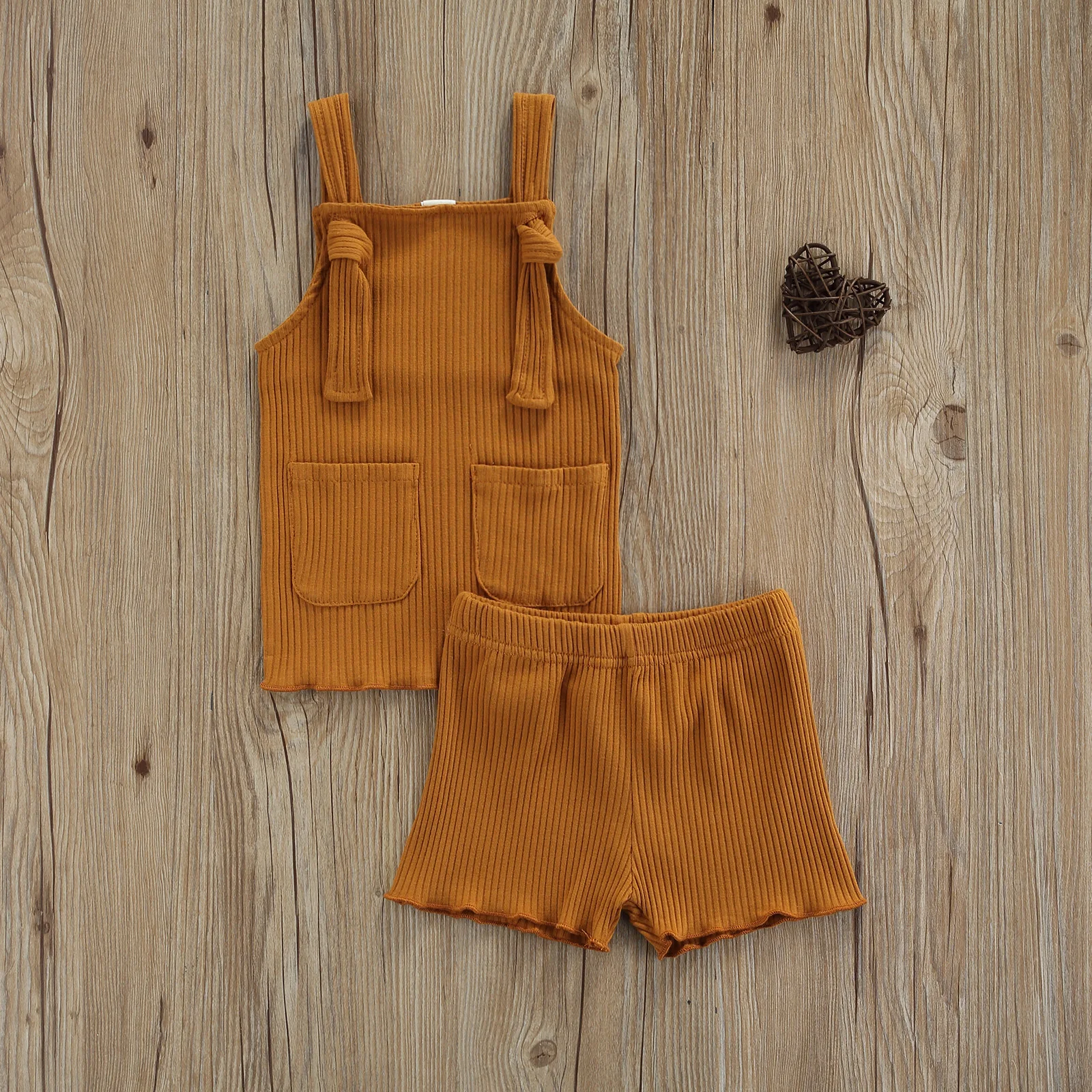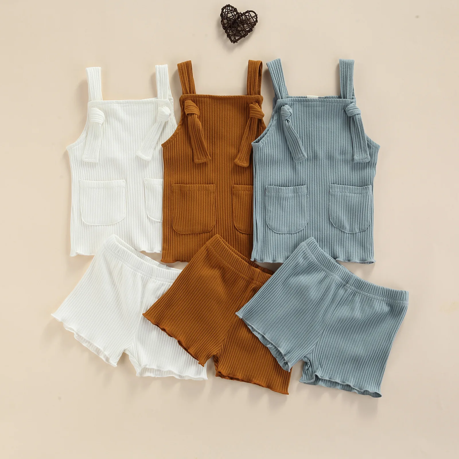Conyson Summer Infant Baby Boys Girls Clothes Ribbed Knitted Sleeveless Pocket Vest Tops+Shorts Toddler Newborn Soft Tracksuits