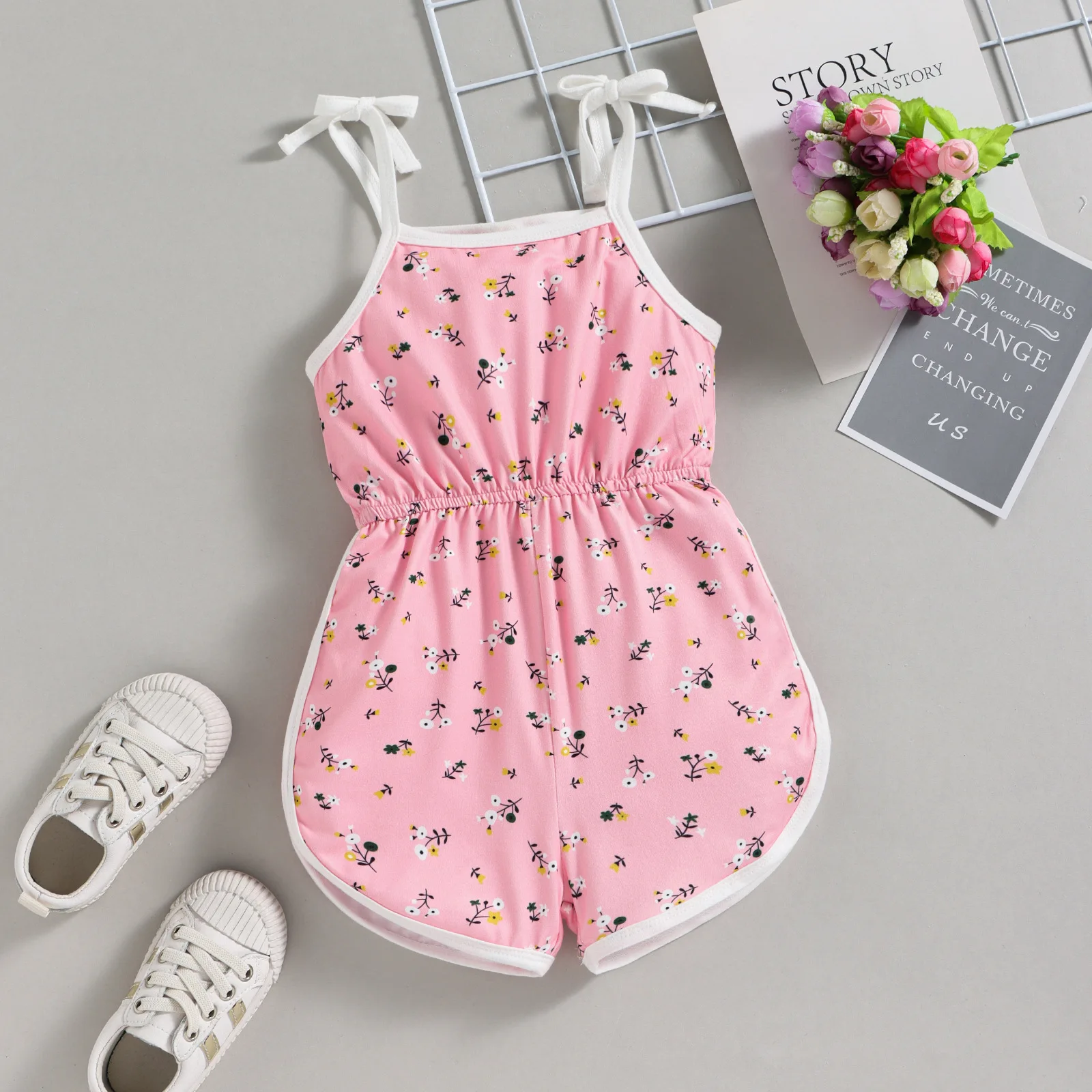 Product Name | Conyson Wholesale Baby Girls Romper Flower Stripe Printed Sleeveless Tie-Up Shoulder Strap Sling Halter Jumpsuits Clothing Suspenders Kids |