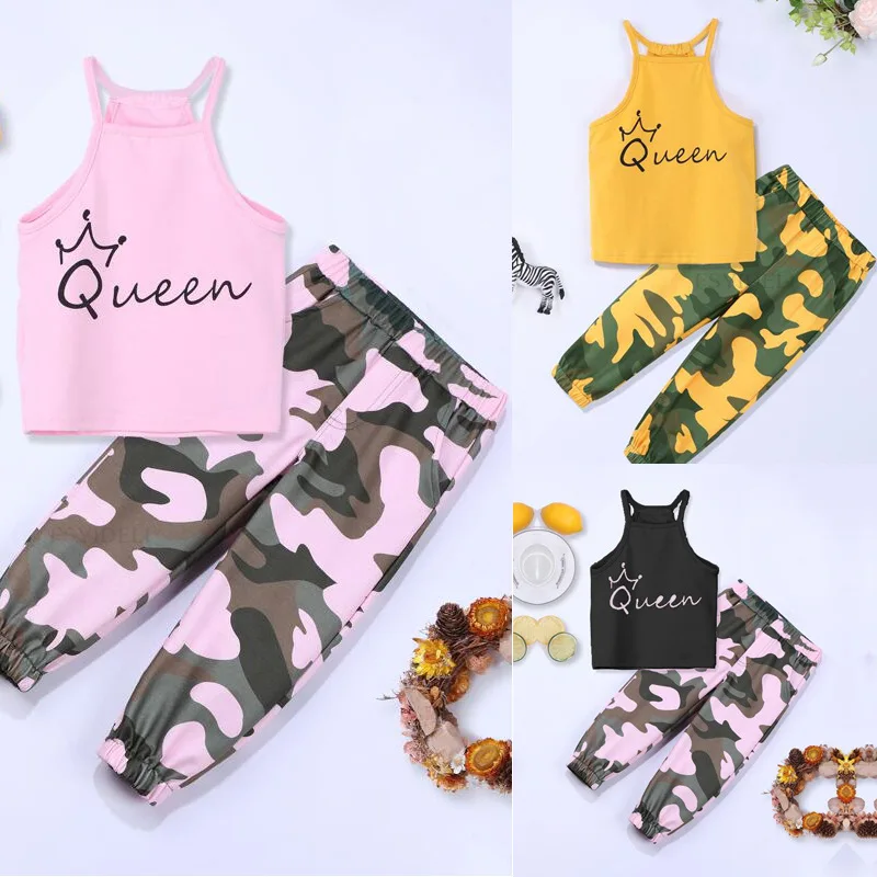 Conyson fashion boutique Baby suit Spring summer casual Sleeveless print vest kids clothing girls cotton Camouflage clothes Set