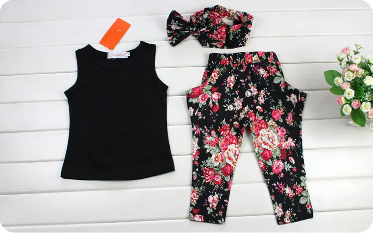 Conyson fashion style cotton Baby Girl summer children sleeveless Print flower o-neck clothes Suit baby kids clothing Set