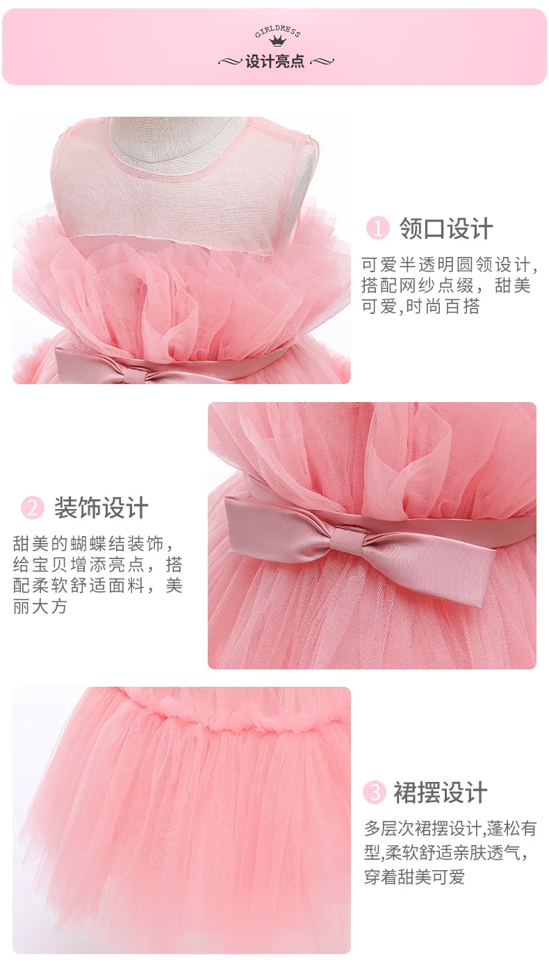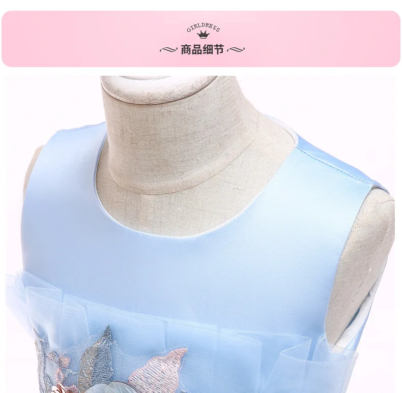 Conyson high quality rts boutique summer sleeveless Baby girl embroidery floral Birthday ball gown Kid Girl Princess Party Dress