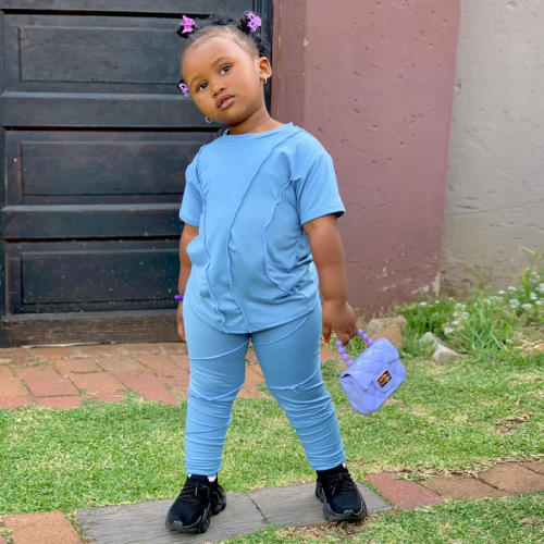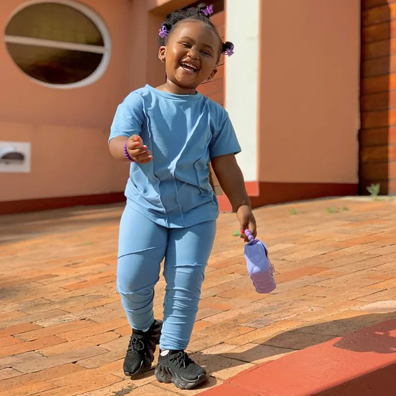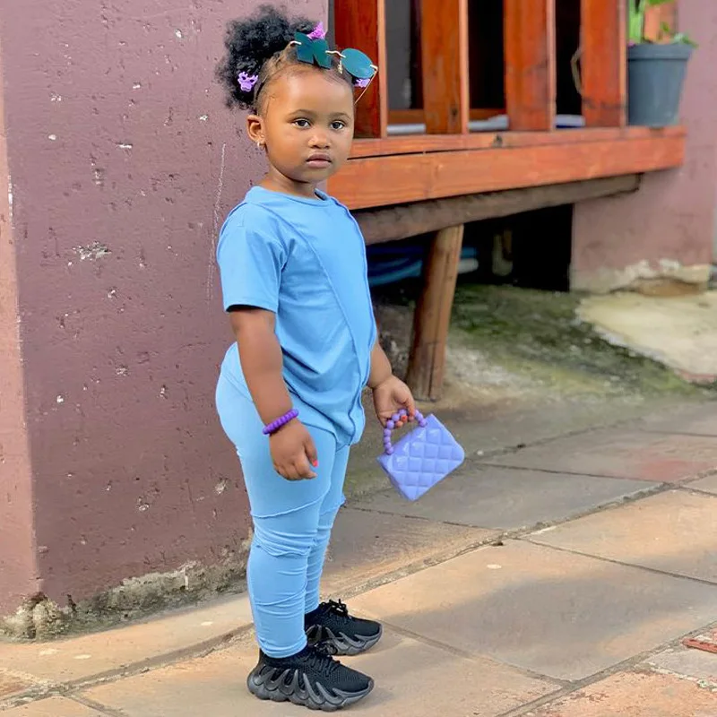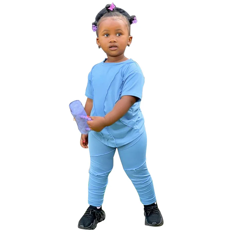 Conyson summer Baby Girls T-shirt Cotton Ruched Stacked Legging Pants Two-piece Suit Kids Girl Stacked Leggings Set