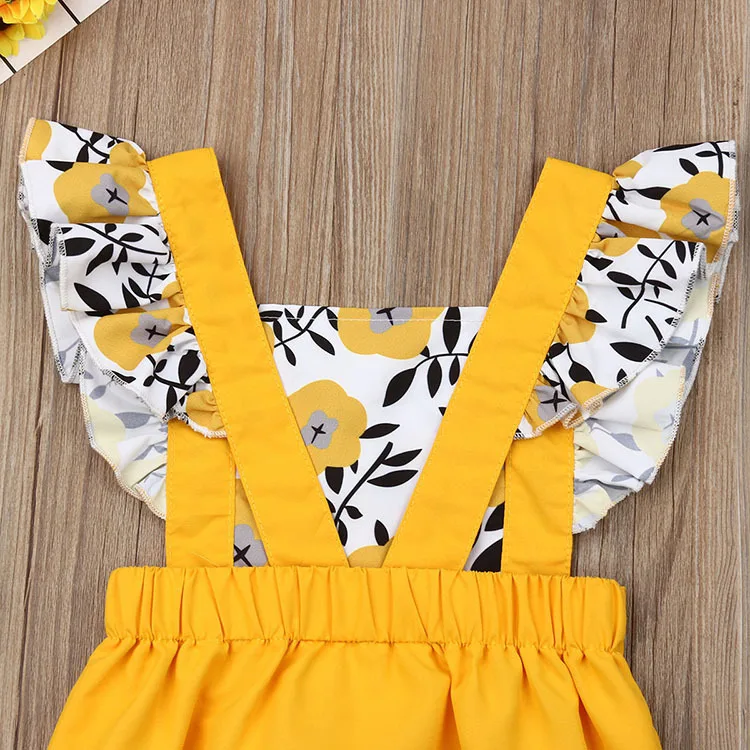 Factory Supply Square Collar Yellow Floral Baby Girls' Ruffle Rompers Baby Girl Romper Baby Clothes Newborn