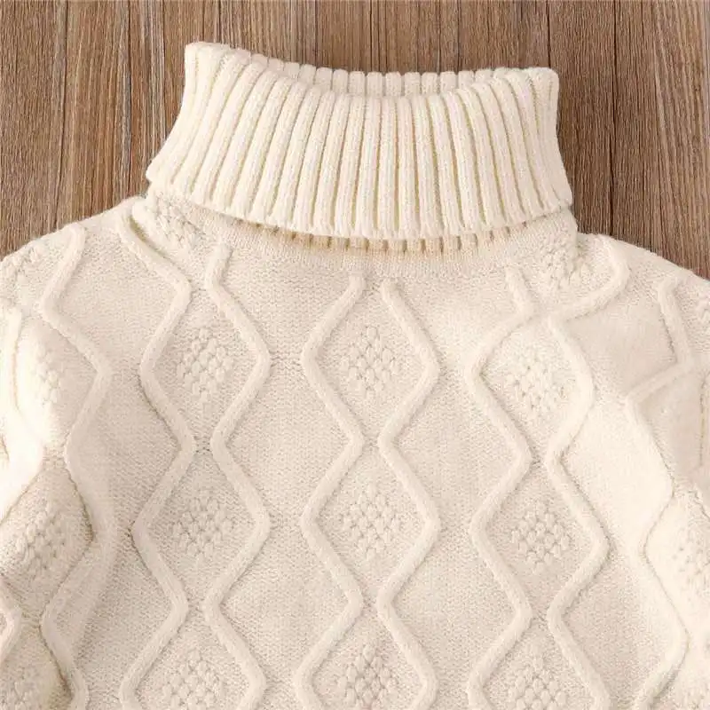 Fashion Fall Warm Winter Kids Baby Girls Turtleneck Knit Sweater Tops Plaid Print Mini Skirt Outfit Set