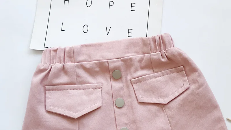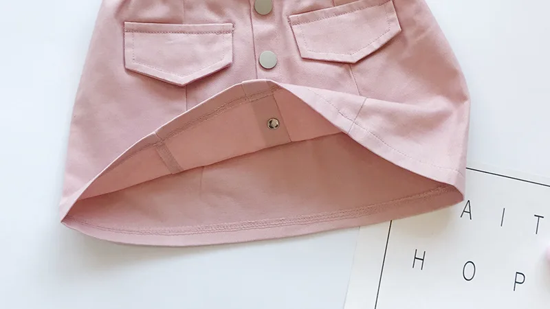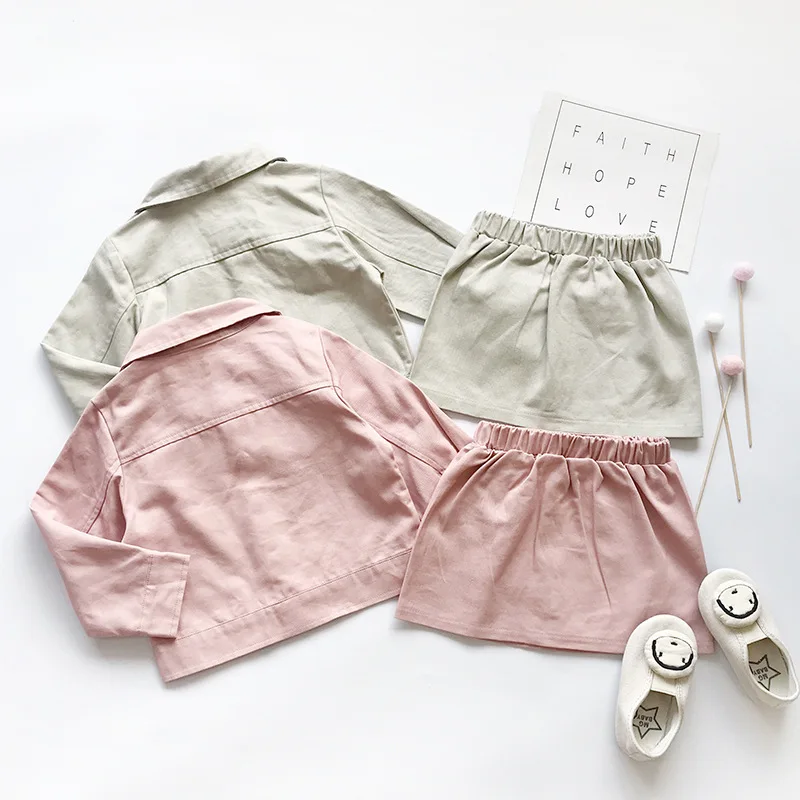 Girl Suit Pink Pocket Buttoned Jacket +Matching Skirt 2 Piece Cotton Baby Girls Boutique Clothing Set