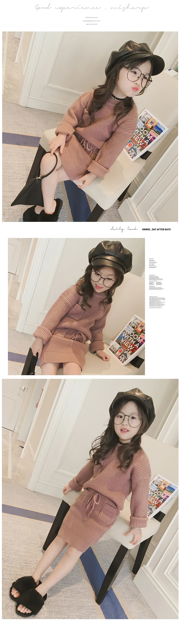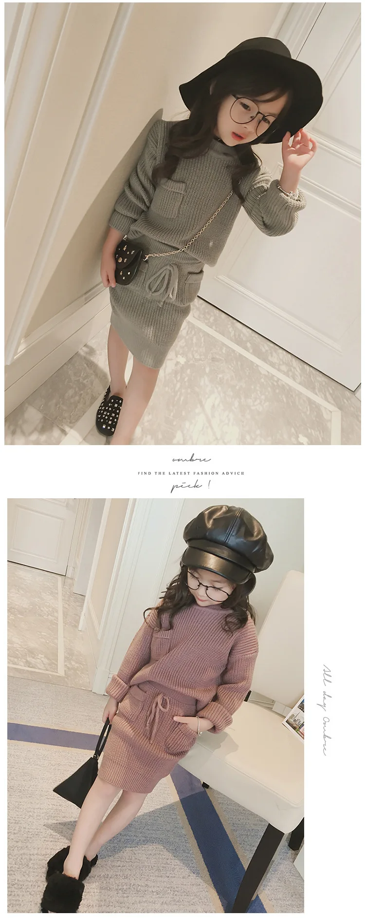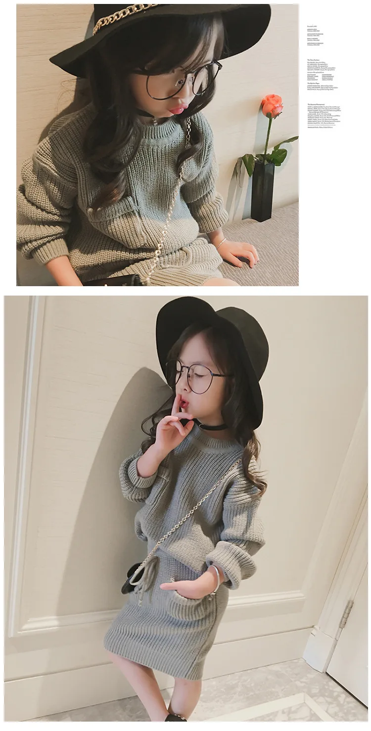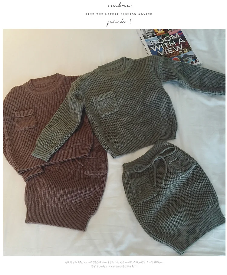 High Quality 2 Colors Cotton Knitted Sweater Top And Skirt Girls Two Piece Sweater Skirt Set