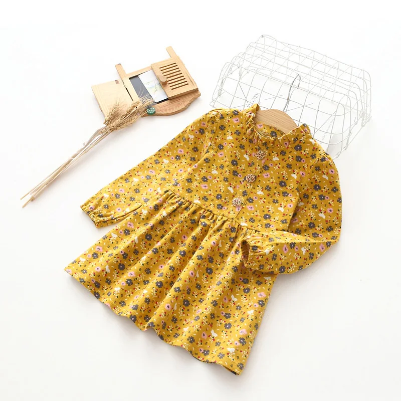 High Quality Lace Button Knee-Length Dot Straight Wholesale Kids Girl Long Sleeve Cotton Dresses