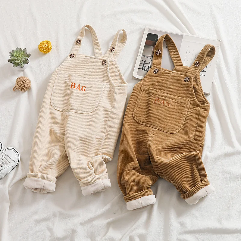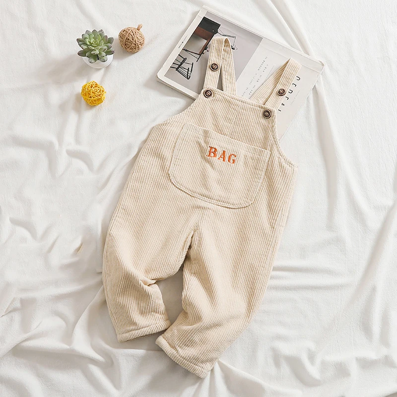 Wholesale Full Length Letter Print Embroidered Corduroy Kid Overalls Toddler Sport Pants For Children