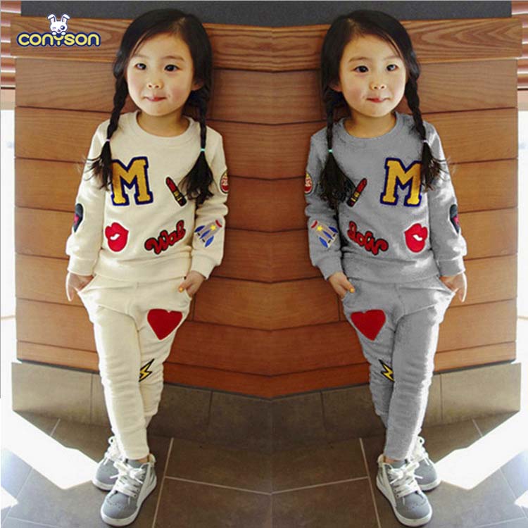 Gray Product Name | Factory direct discount price round neck cute girl alphabet track suit baby girl summer kids clothing sets |